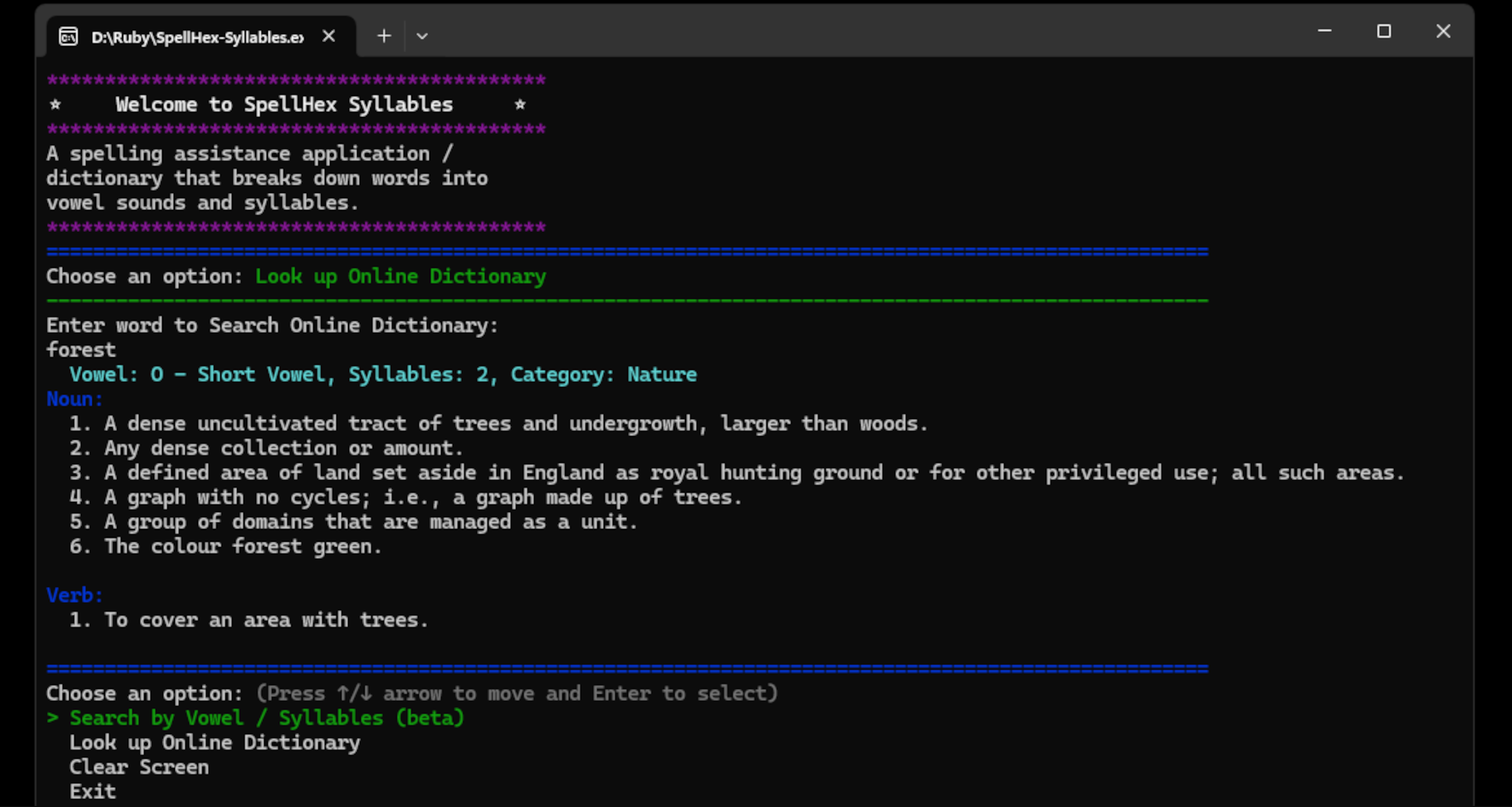 SpellHex Syllables – Vowel Sounds & Syllable Count Dictionary