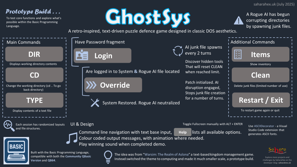 Welcome to this deep dive into GhostSys, a retro-inspired puzzle defence prototype crafted with classic DOS aesthetics and built entirely in BASIC. This experimental project merges nostalgic charm with simple but engaging mechanics – and lays the groundwork for future builds.